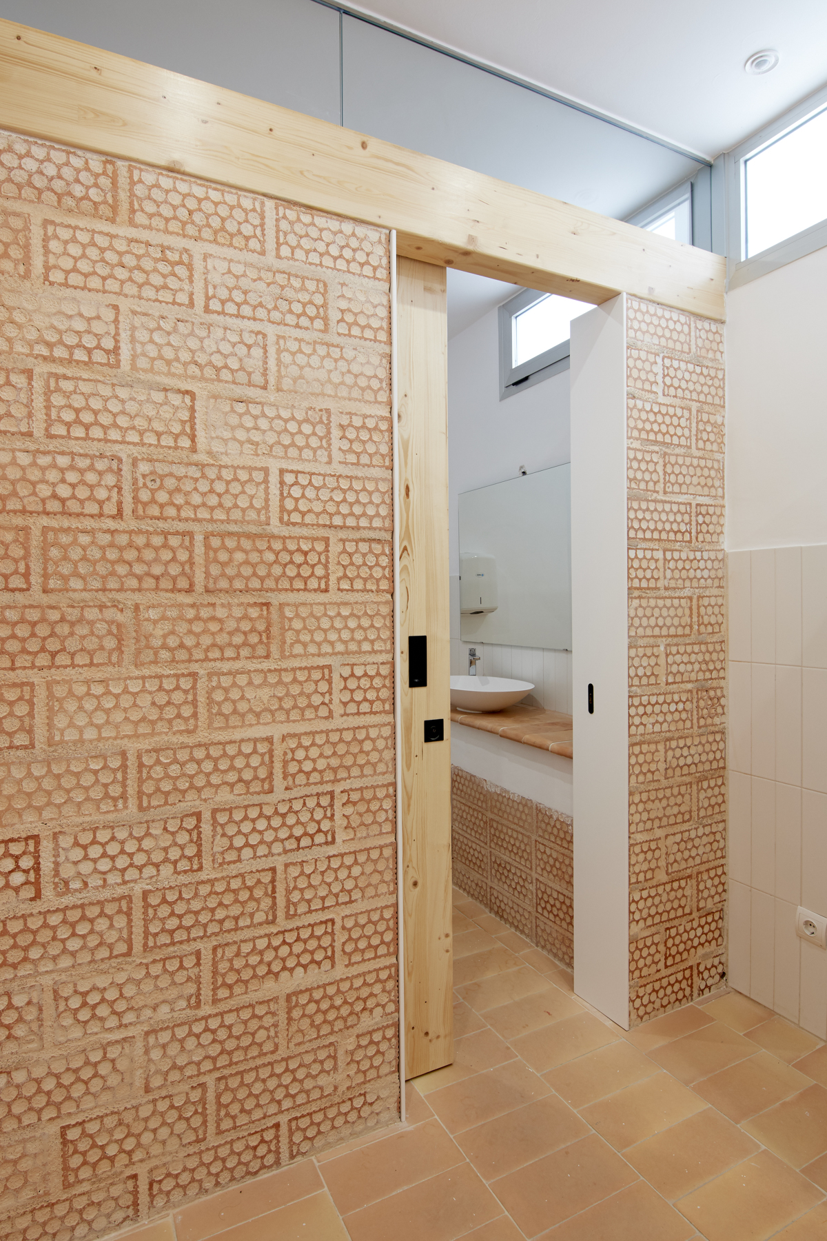 La reforma incorpora criteris de sostenibilitat a través de la selecció d’aparells de baix consum, aixetes temporitzades i un sistema de ventilació eficient que garanteix la qualitat de l’aire. A més, s’ha tingut en compte la il·luminació natural, complementada amb lluminàries LED de baix impacte energètic.
